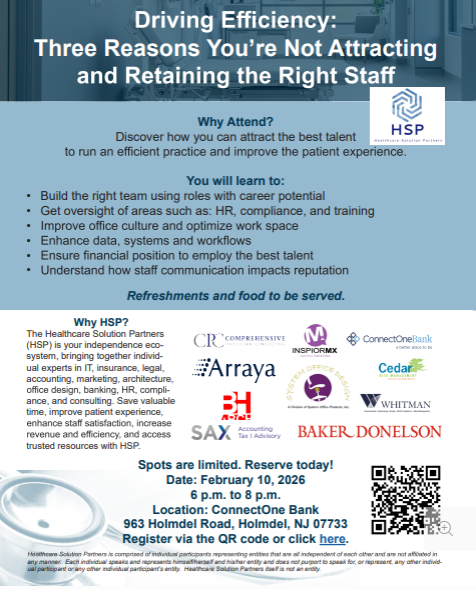 I’m looking forward to a dynamic and engaging conversation with my peers at Healthcare Solution Partners (HSP), a collaborative ecosystem of professionals across IT, insurance, banking, marketing, accounting, legal, architecture, office design, HR, compliance, and healthcare consulting. This is a great opportunity to connect with fellow healthcare leaders, exchange ideas, and walk away with practical, actionable strategies to support practice growth, operational efficiency, and long-term success. Plus, enjoy light food and refreshments while networking with industry experts who understand the evolving needs of independent medical practices.